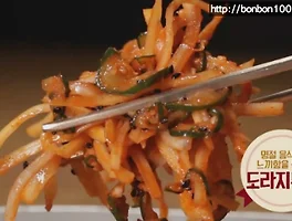 mbn 알토랑 임성근잡채 나박 물김치김하진 소갈비찜 이종님 새우전 꼬치전 302회 도라지 300g, 취청오이 1개 반(300g), 양파 반 개, 고운 고춧가루 4 큰 술, 식초 6 큰 술, 매실청 3 큰 술, 다진 마늘 2 큰 술, 꽃소금 1 큰 술, 볶은 검은깨 2 큰 술 1. 도라지 300g은 5~6cm 길이로 잘게 찢는다. 꽃소금 1큰술, 설탕 1큰술, 식초 1 큰 술을 넣고 10분간 절인 뒤 물기를 꼭 짠다 2. 취청오이 1개 반(300g)은 반으로 가르고 씨 제거 후 편으로 썬다. 소금 반 큰술, 설탕 반 큰 술을 넣고 섞어 10분간 절여준다. 3. 절인 오이는 물기를 꼭 짠다 양파는 채썰어 준비한다. 4. 절인 도라지에 오이를 넣고 고운 고춧가루 4 큰 술을 넣어 색을 입힌다. 5. 식초 6 ..